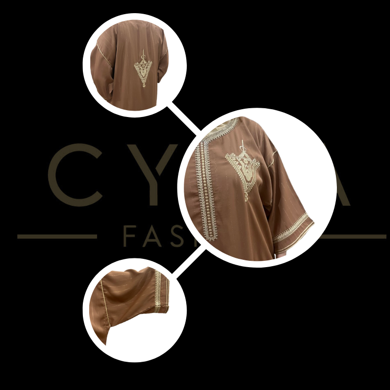 ●نقدم لكِ غندورة الصيف الملكية بثوب مسلك ومطروز، المصممة خصيصاً لتمنحك إطلالة أنيقة وشعوراً بالبرودة والانتعاش طوال اليوم.